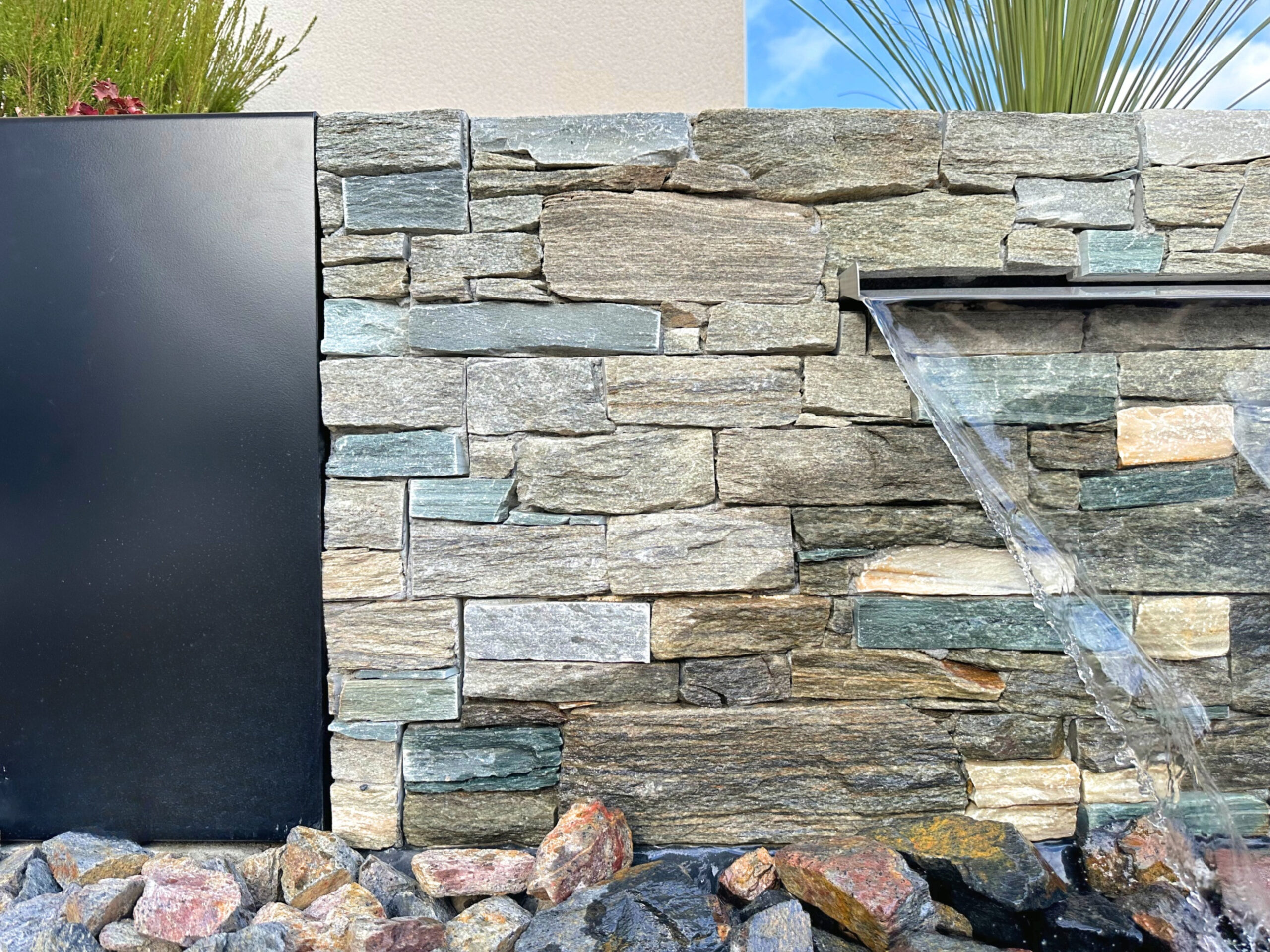 Le challenge L'enjeu dans ce jardin était de créer un espace harmonieux et ressourçant en gardant l'idée du bassin, déjà présent. Notre solution Le bassin a été complètement redessiné, telle une rivière tout droit sortie du trompe-l'oeil de la fresque murale existante. Les roches, les galets, la cascade et les nombreux végétaux offrent un décor...